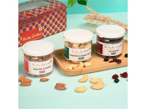 Nutty Gritties Dry Fruits Gift Box (Almonds + Cashews + Mix Berries), 300 g (3 x 100 g)